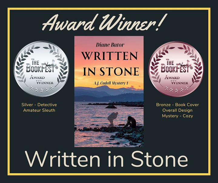 Written in Stone won AWARD FINALIST in category Women's Crime Fiction in this year's Global Book Awards. It goes along well with the Silver and Bronze from BookFest!